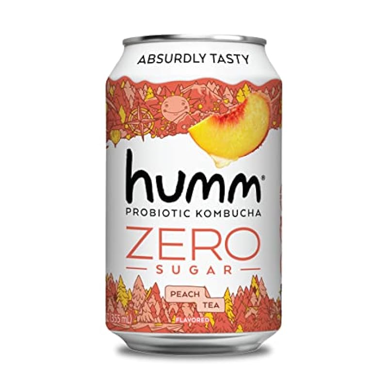 Humm Probiotic Kombucha Zero Sugar Peach Tea - No Refrigeration Needed, Keto-Friendly, Organic, Vegan, Gluten-Free - 12oz Cans (4 Pack) 707110880