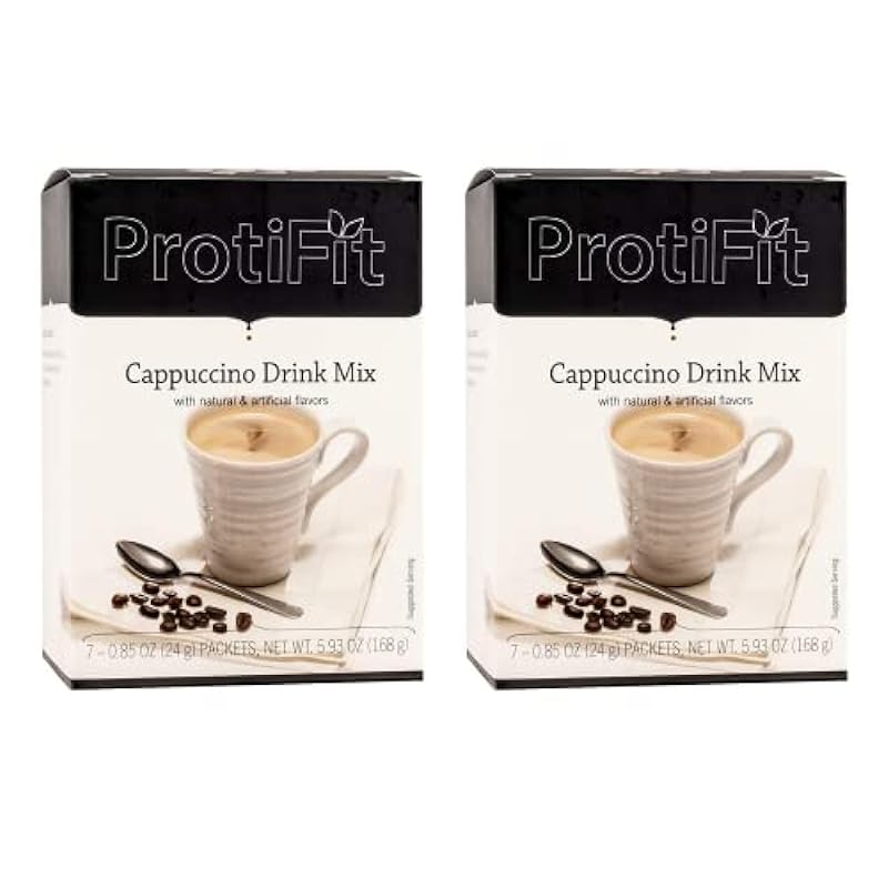 PROTIFIT – High Protein Decaf Cappuccino Drink Mix,15g Protein, Low Calorie, Low Carb, Low Fat, Low Sugar, Cholesterol Free, Ideal Protein Compatible, 7 Servings Per Box, (2 Pack) 704585951