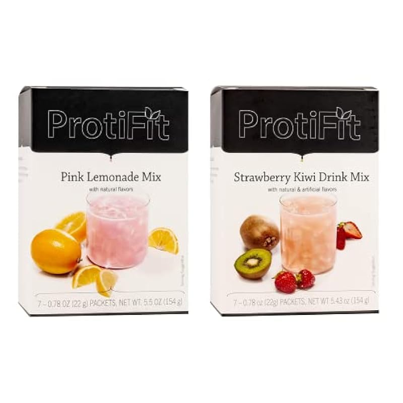 PROTIFIT – High Protein Pink Lemonade & Strawberry Kiwi Fruit Drink 2 Pack, 15g Protein, Low Calorie, Sugar Free, Ideal Protein Compatible, 7 Servings Per Box, (2 Pack) 887337621