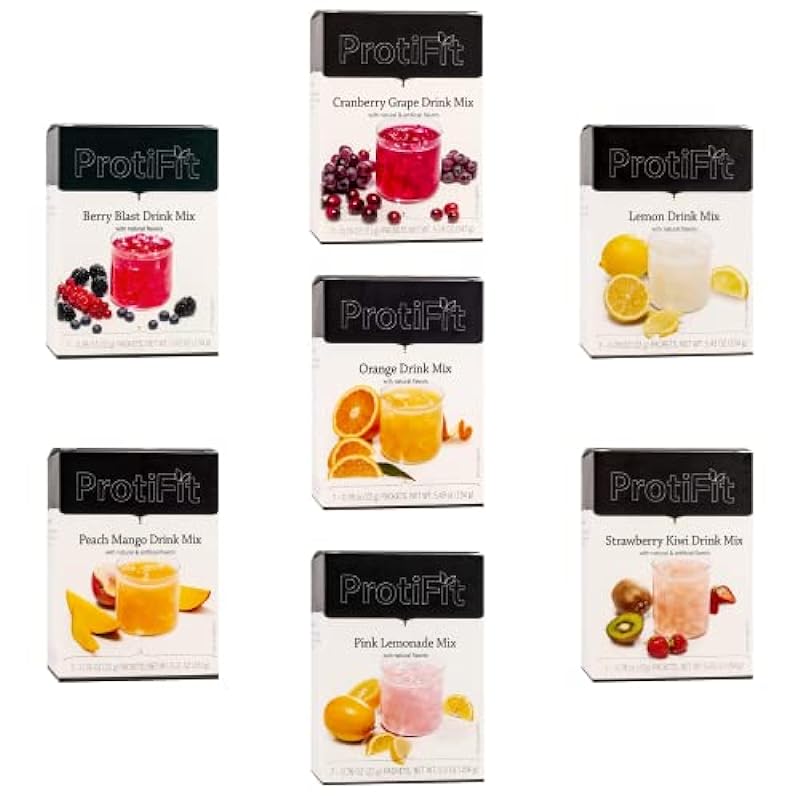 PROTIFIT – High Protein Fruit Drink Variety Bundle 7 Pack, 15g Protein, Low Calorie, Sugar Free, Ideal Protein Compatible, 7 Servings Per Box, (7 Pack) 140249173
