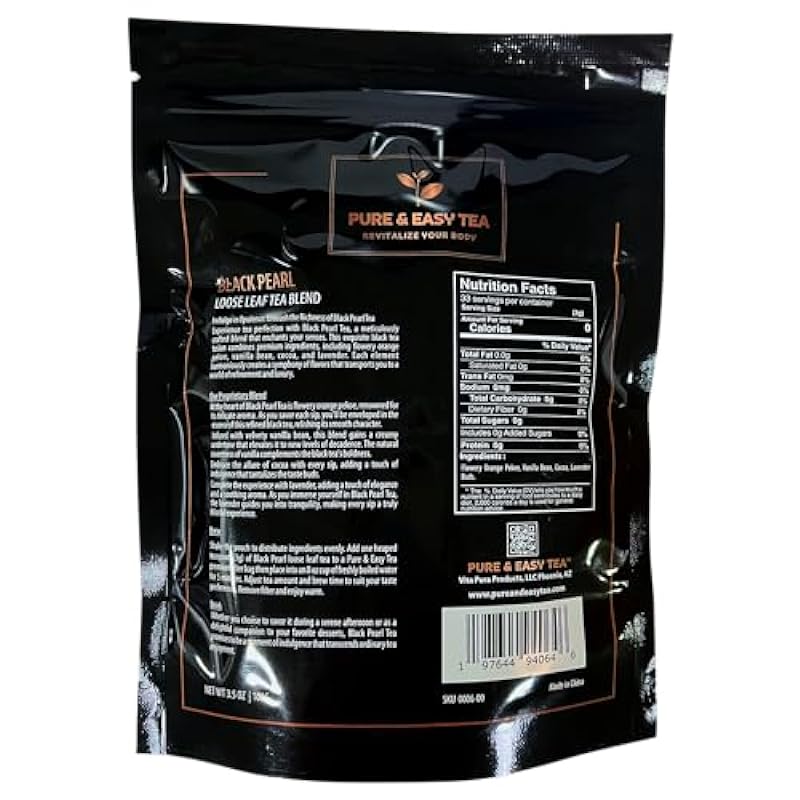 PURE & EASY TEA, Black Pearl, Flowery Orange Pekoe, Dried Vanilla Bean, Cocoa, Lavender Buds, Luxury Loose Leaf Blend, Decadent & Smooth, 100% Natural, Caffeinated, 100g/3.5oz 394722727