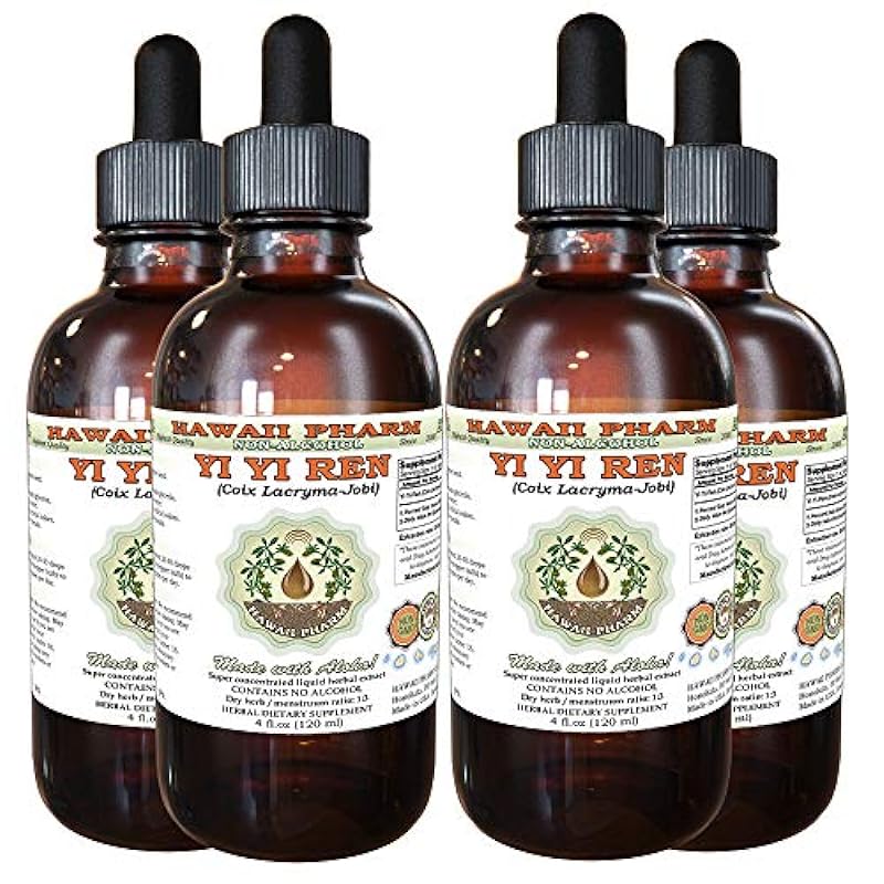 Hawaii Pharm LLC Yi Yi Ren, Coix (Coix Lacryma-Jobi) Tincture, Dried Seed Liquid Extract, Yi Yi Ren, Glycerite Herbal Supplement 4x4 Oz 291331232