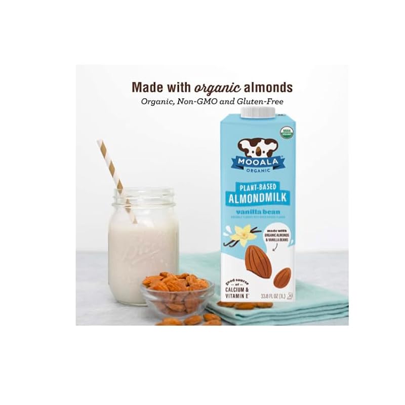 Mooala – Organic Vanilla Bean Almondmilk, 33.8 oz (Pack of 6) – Shelf-Stable, Non-Dairy, Gluten-Free, Vegan & Plant-Based Beverage 69002402
