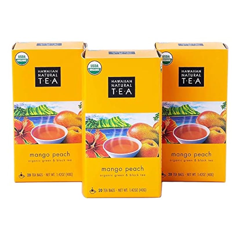 Hawaiian Natural Tea Mango Peach Flavored Organic Tea - Tropical Fruit Green Tea Blend with Black Tea - Perfect Daily Cup & Gift for Tea Lovers - 60 Tea Bags 272777123