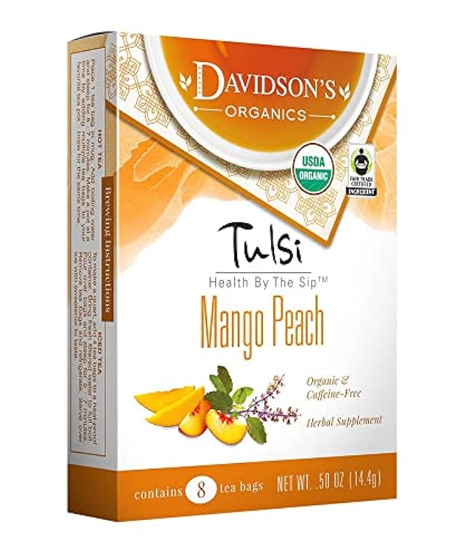 Davidson's Organics, Tulsi Mango Peach, 8-count Tea Bags, Pack of 12 417066007