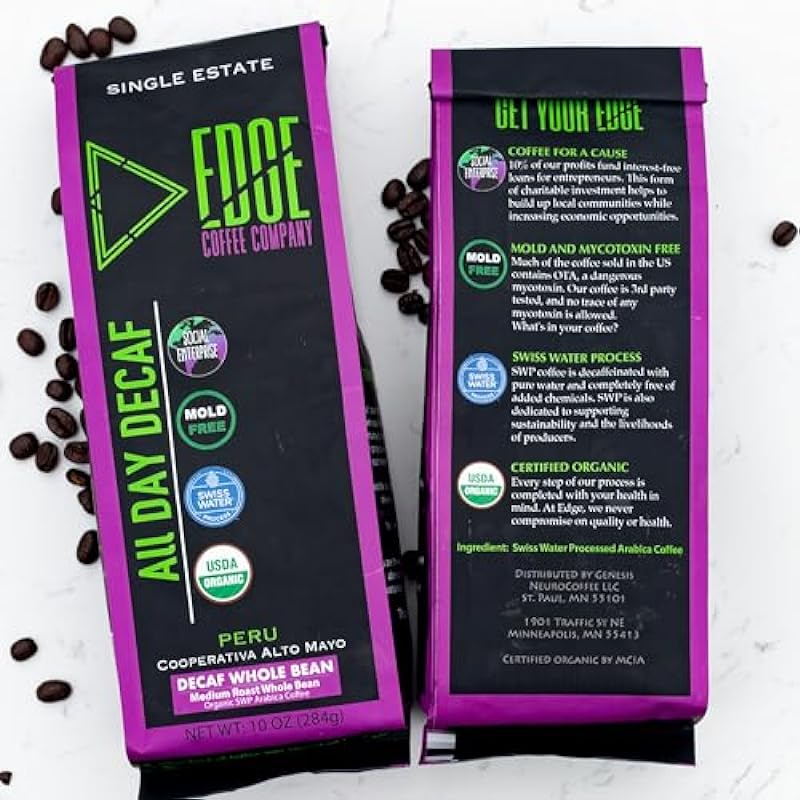 Edge Mold Free All Day Decaf - Organic Mycotoxin-Free Specialty Grade Low Acid Clean Swiss Water Process Decaf Coffee 10oz Medium Roast 664223175
