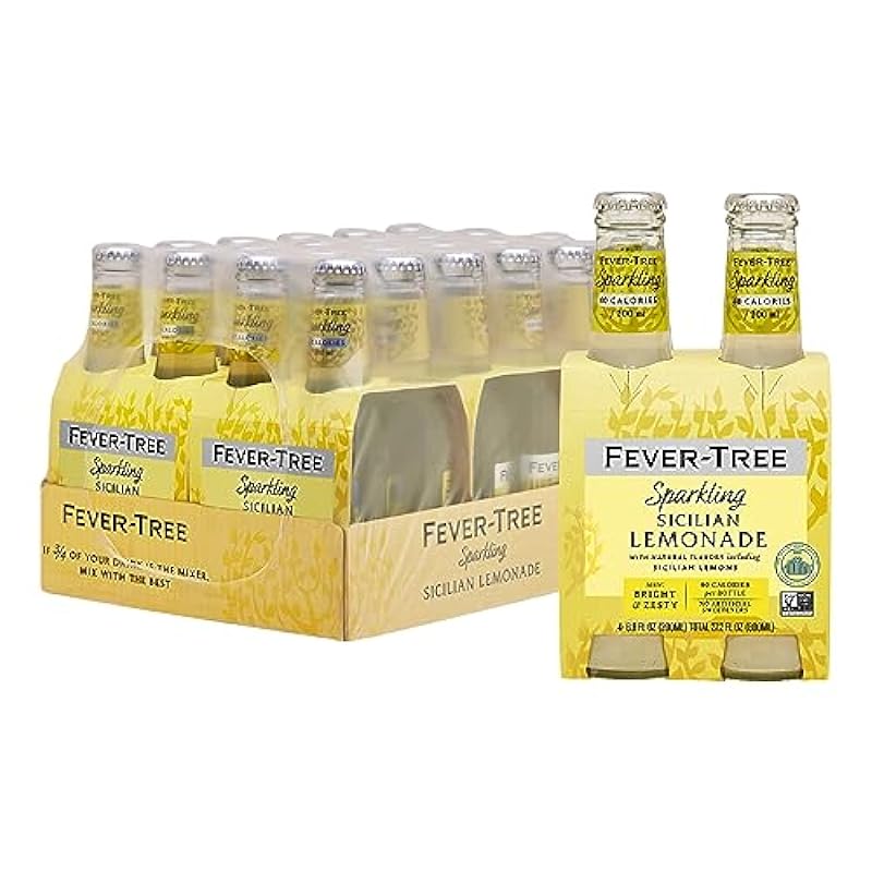 Fever Tree Sparkling Sicilian - Premium Quality Mixer - Refreshing Beverage for Cocktails & Mocktails. Naturally Sourced Ingredients, No Artificial Sweeteners or Colors - 200 ML Bottles - Pack of 24 859280504