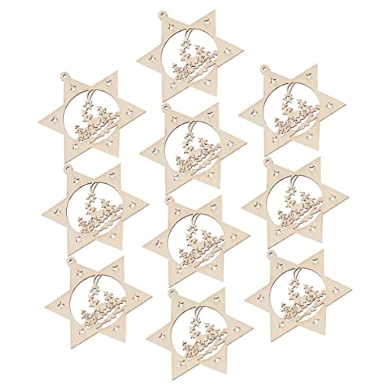 COHEALI 10pcs Christmas Nativity Decor Wood Carved Ornaments for Home Party Wood Hanging Decorations Wood Star Ornament Woodsy Decor Wood Decor Wood Cutouts Wooden Crafts Hollow Out 118939862
