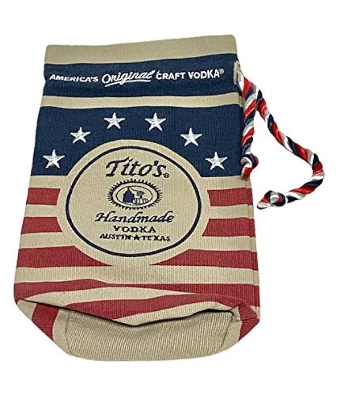 Tito's Vodka Stars & Stripes Burlap Bag - Holds 750 ml Bottle | 10" x 6" 153230558