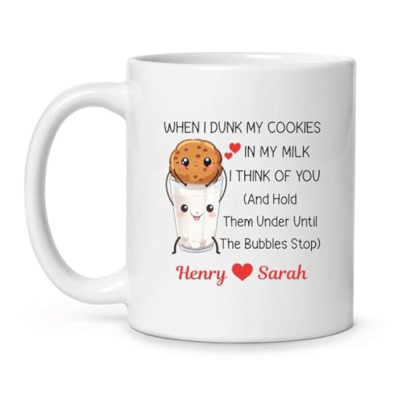 ELPSTORE Personalized Cookies & Milk Tea Cup Gift For Engaged Couple - Customized Choose Name Couple Coffee Cup - When I Dunk My Cookies In Milk I Think Of You Mug - Gift for Just Married 889264468