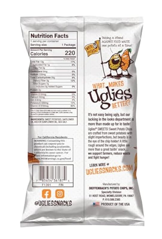 UGLIES Sweet Potato Kettle-Cooked Potato Chips, Gluten-Free Snacks, Kosher-Friendly Chips, Non-GMO Snacks for Kids or Office, Lunch Snacks, Sweet Potato Chips, 1.5 Oz. Bags, Pack of 24 80514570