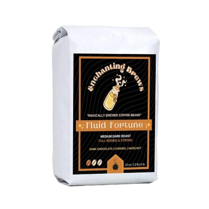 Enchanting Brews - Ground Coffee, Medium Dark Roast, 100% Arabica, Hints of Dark Chocolate, Caramel and Hazelnut, Low Acid, Full Bodied and Strong (Fluid Fortune, 5 Pound) 976363869