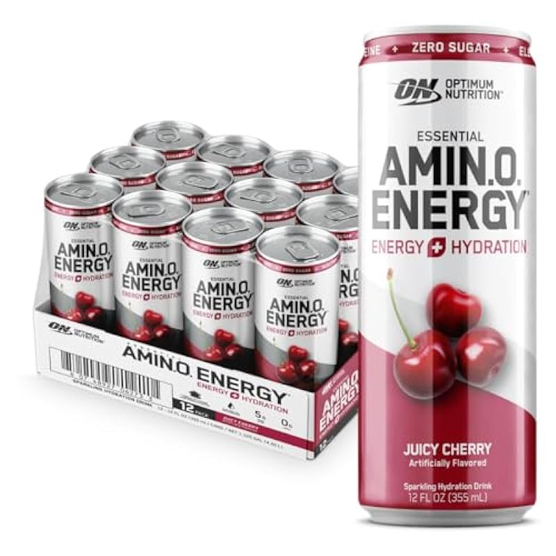 Optimum Nutrition Amino Energy Sparkling Hydration Drink, Electrolytes, Caffeine, Amino Acids, BCAAs, Sugar Free, Juicy Cherry, 12 Fl Oz, 12 Pack (Packaging May Vary) 546784419