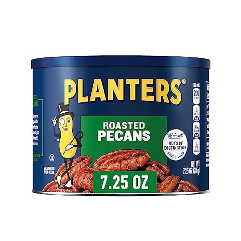 PLANTERS Roasted Pecan Nuts, Party Snacks, Plant-Based Protein, 7.25 Oz Canister 143419073