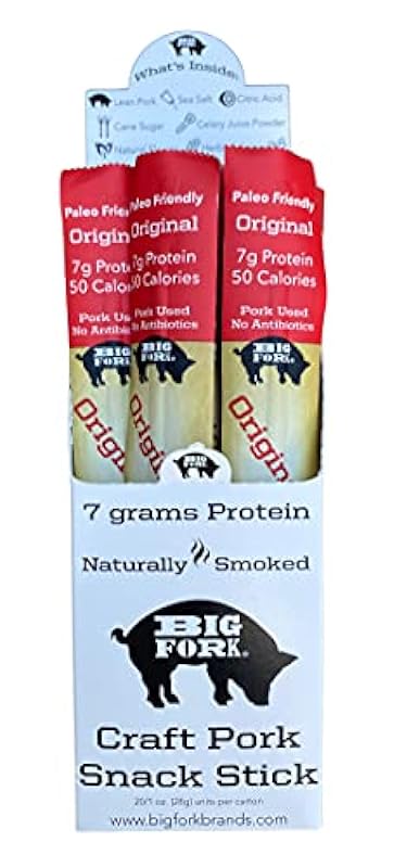 Craft Pork Meat Stick, High Protein Snack Sticks, Original Flavor, 20 X 1 oz. Sticks, 50 Calories, 7g Protein, Soy-Free, Gluten-Free, Waygu of Pork - Big Fork 420262894