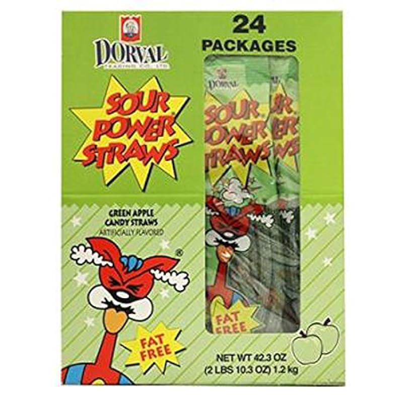 Sour Power Straws Green Apple, 24 Count (SUGAR CANDY - REGULAR SIZE) 687200101