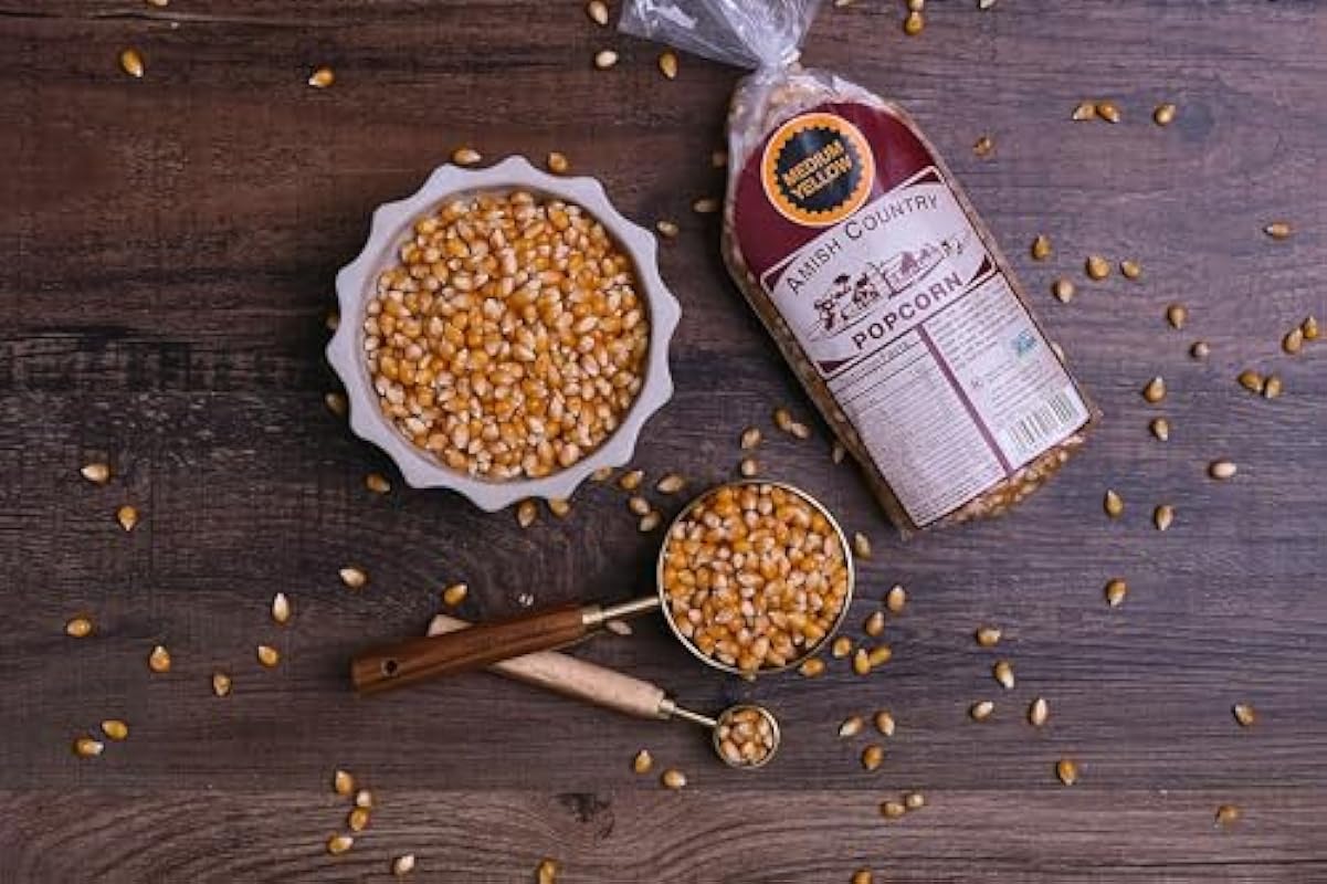- 1 LB BAG OF MEDIUM YELLOW POPCORN – This delicious, gourmet popcorn is made in the heart of Amish country.