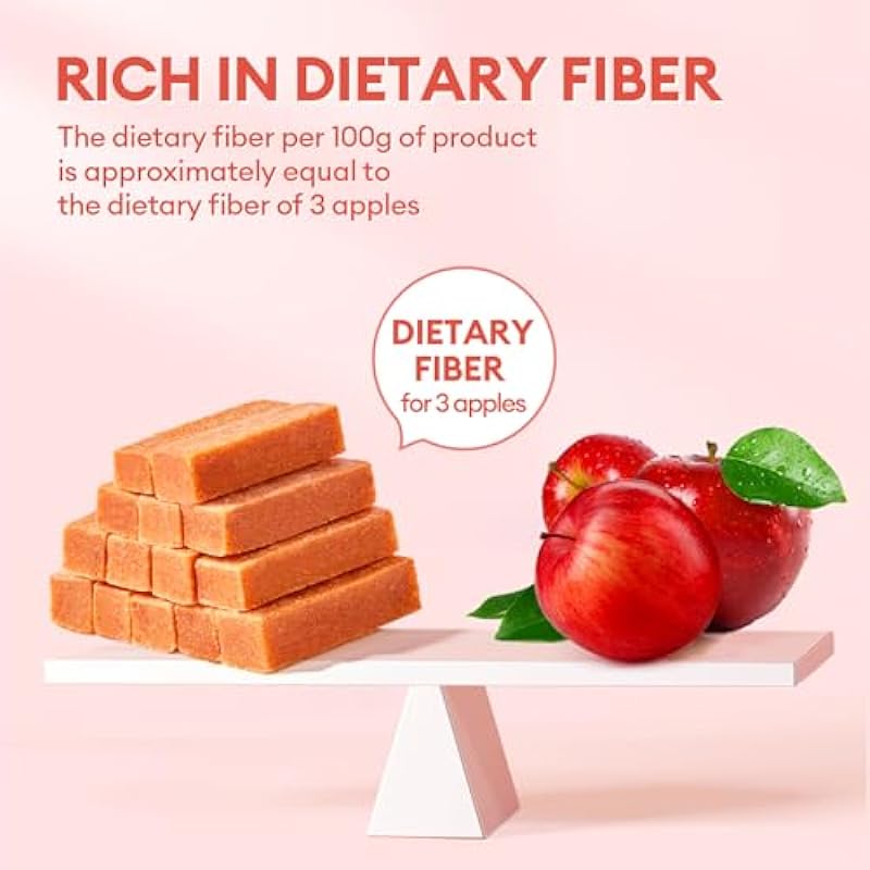 • The dietary fiber in every 100 grams of product is equivalent to the dietary fiber of 3 apples*, fruity and nutritious