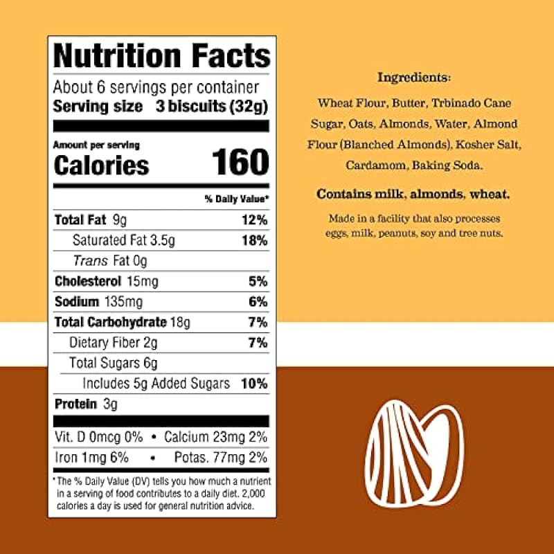 - DELIGHTFUL ALMOND: Toasted almond biscuit with a lively dash of cardamom. Savor with marmalade or a bite of chocolate, cheddar or creamy blue.