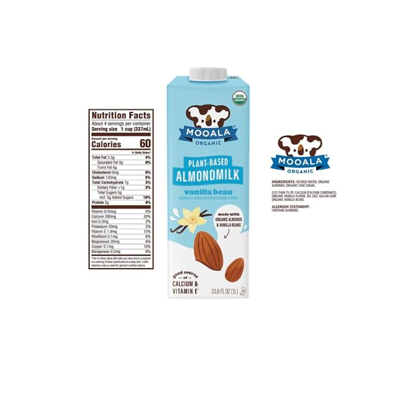 • Dairy, Soy and Carrageenan-Free: More than just another almond milk, you can feel great with each sip knowing that Mooala’s Vanilla Bean Almondmilk is a good source of Calcium and Vitamin E.