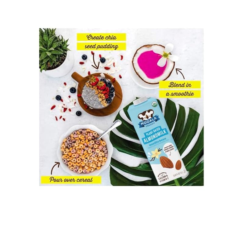 Mooala – Organic Vanilla Bean Almondmilk, 33.8 oz (Pack of 6) – Shelf-Stable, Non-Dairy, Gluten-Free, Vegan & Plant-Based Beverage 69002402