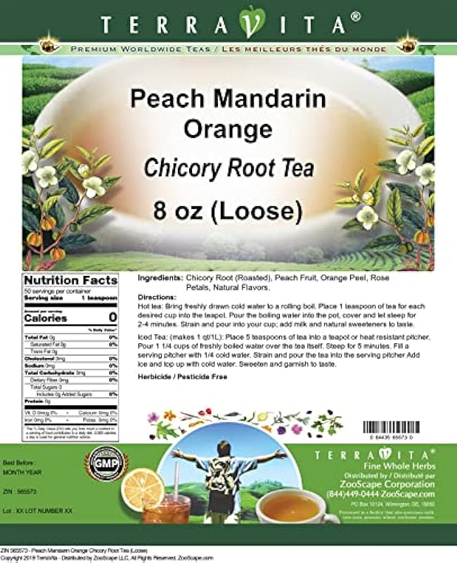 - Our Peach Mandarin Orange Chicory Root tea is a delicious flavored Chicory Root coffee alternative with Peach Fruit, Orange Peel and Rose Petals that you will really enjoy! The unique and caffeine-free Peach Mandarin Orange aroma and taste is a delight! – Ingredients: Chicory Root, Peach Fruit, Orange Peel, Rose Petals and Natural Peach Mandarin Orange Flavor.