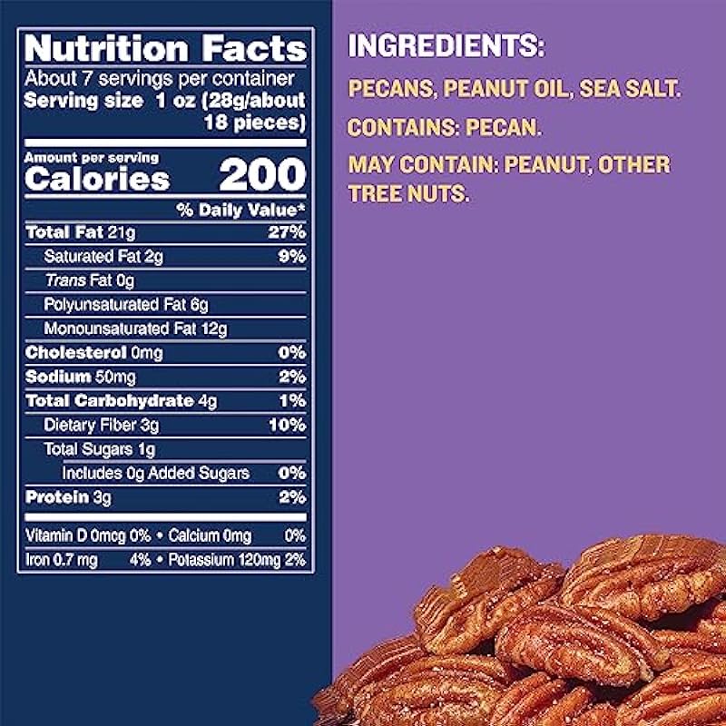 • Classic Crunch: Roasted to perfection in peanut oil and seasoned with sea salt, these roasted pecans have the crunchy texture and natural nutty flavor you expect from PLANTERS snack foods