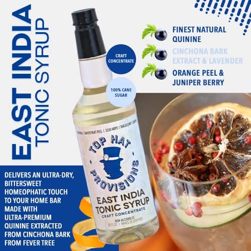 Top Hat East India Craft Concentrated Quinine Tonic Drink Syrup – 5X Natural Quinine Concentrate – Just Add Club Soda – 32oz Bottle 302213609