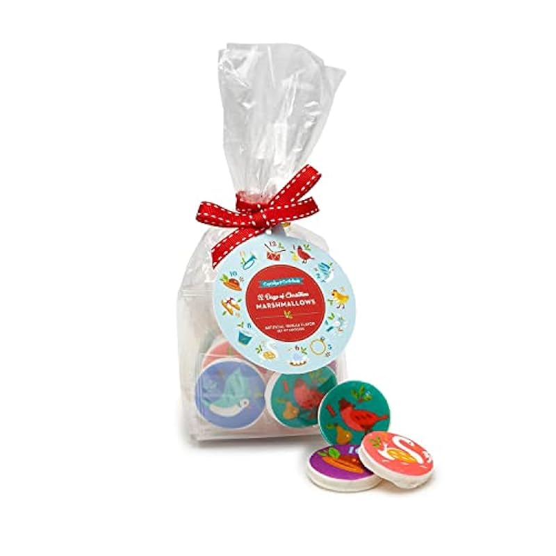 Two's Company 12 Days of Christmas Vanilla Marshmallow Candy in Gift Bag, Set of 12, Sugar, Each Candy Piece is Individually Wrapped, Christmas, Holiday Tradition 5405220