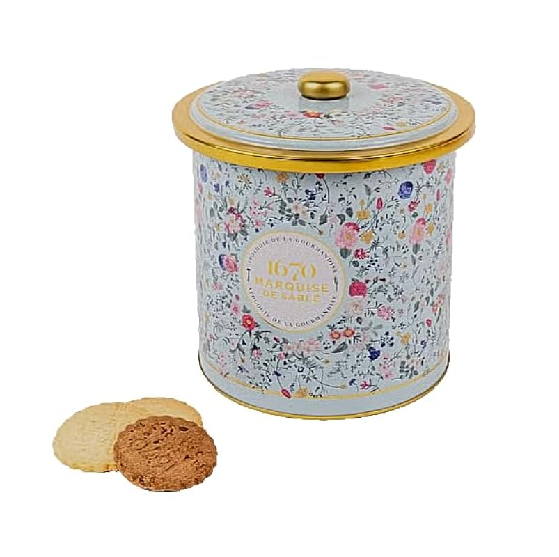 La Sablésienne, Bouquet Sauvage (Wildflowers) Round Decorative Tin of 2 Pure French Shortbread Cookie Assortments (Butter & Chocolate), 8.8 oz 326265492